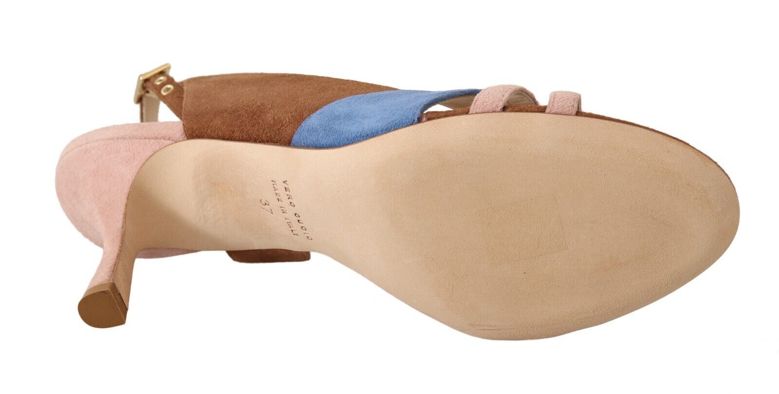 GIA COUTURE Multicolor Suede Leather Slingback Heels Sandals Shoes