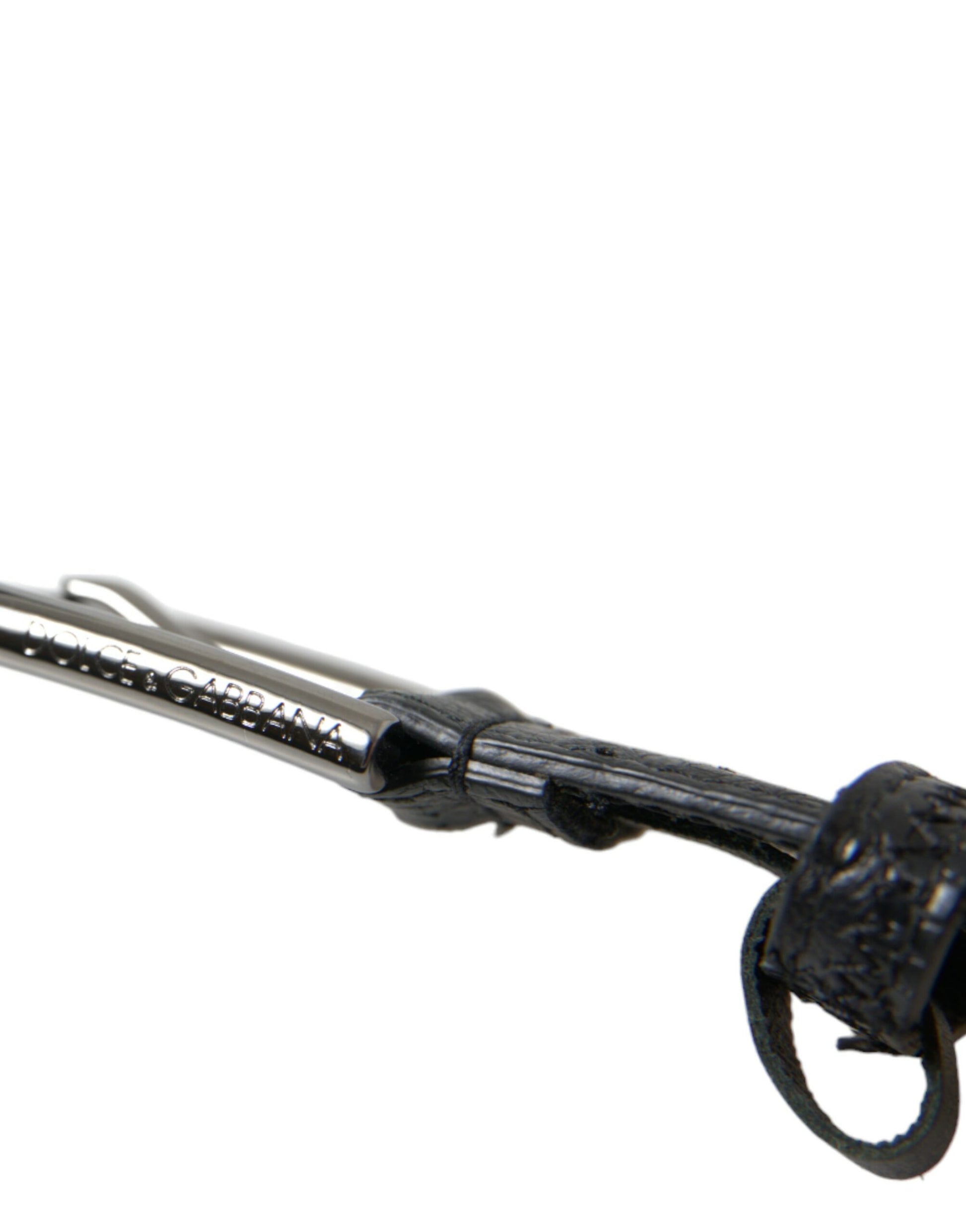 Dolce & Gabbana Black Exotic Leather Silver Metal Buckle Belt
