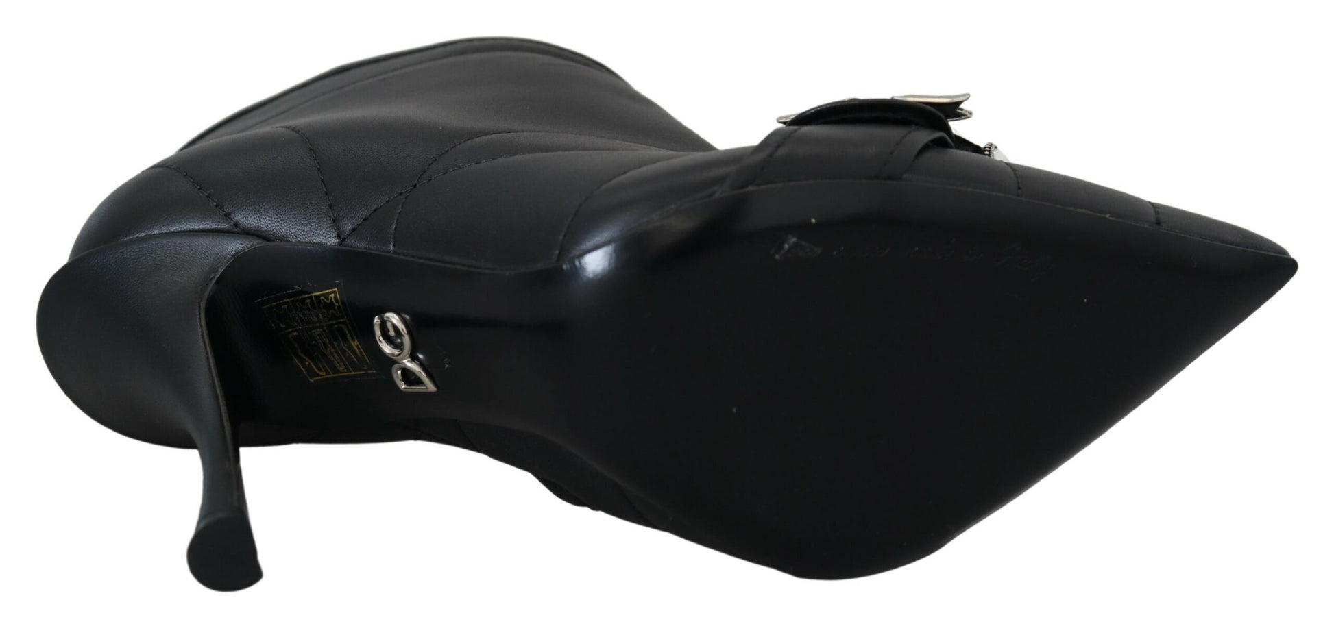 Gorgeous, brand new with tags 100% Authentic Dolce & Gabbana exude Sicilian elegance, taking inspiration from everyday Italian lifestyle, like these black quilted buckled leather booties. Featuring a pointed toe, a side zip fastening, a branded insole and a high stiletto heel.