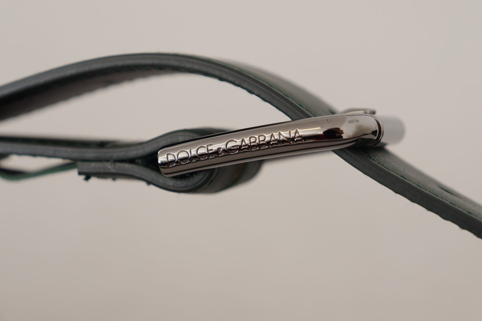 Dolce & Gabbana Army Green Leather Logo Metal Waist Buckle Belt