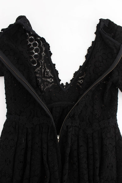 Dolce & Gabbana Black Ricamo Knitted Full Length Maxi Dress