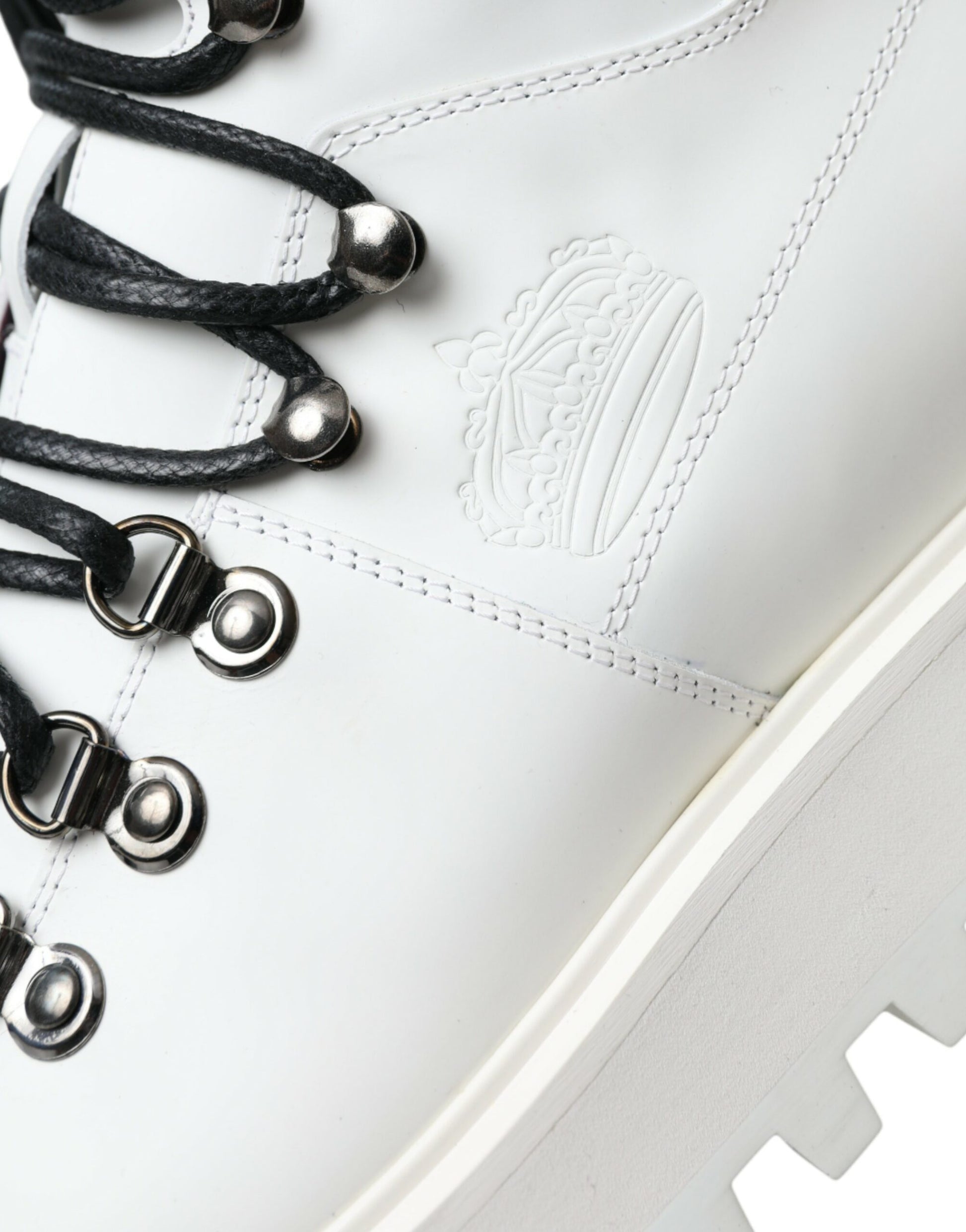 Gorgeous brand new with tags, 100% Authentic Dolce & Gabbana white Vulcano trekking boots and crafted from leather and feature a round toe, a ridged rubber sole, a lace-up front fastening, an ankle length and side and rear logo detailing.